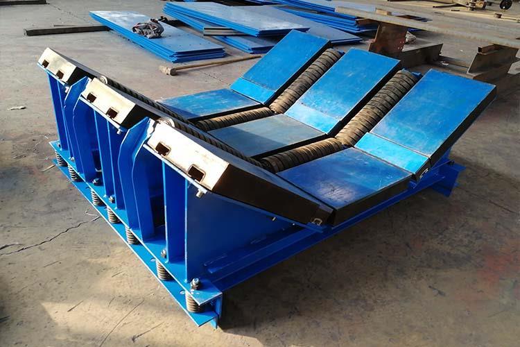 皮帶機(jī)緩沖床主要用于皮帶機(jī)導(dǎo)料槽下方的落料口處,當(dāng)物料下落時,緩沖床利用自身彈性對物料下落到皮帶上的沖擊力進(jìn)行處理,使沖擊力達(dá)到很小,以保證皮帶機(jī)正常運(yùn)行。皮帶機(jī)緩沖床的表層緩沖條擁有五百萬分子量的高分子聚乙烯板面,該高板于皮帶呈面面接觸,使?jié)櫥赃_(dá)到很高,摩擦系數(shù)降至很低。